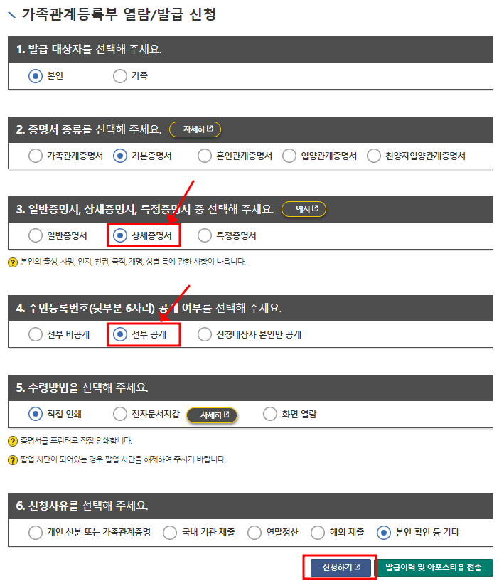 열람 신청 시 본인 또는 법적 대리인의 신분 증명이 필요하며, 열람 목적에 따라 추가 서류를 요구할 수 있습니다.