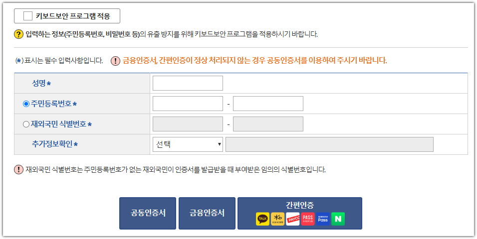 | 신분증 | 본인 확인용 | 주민등록증, 여권 |