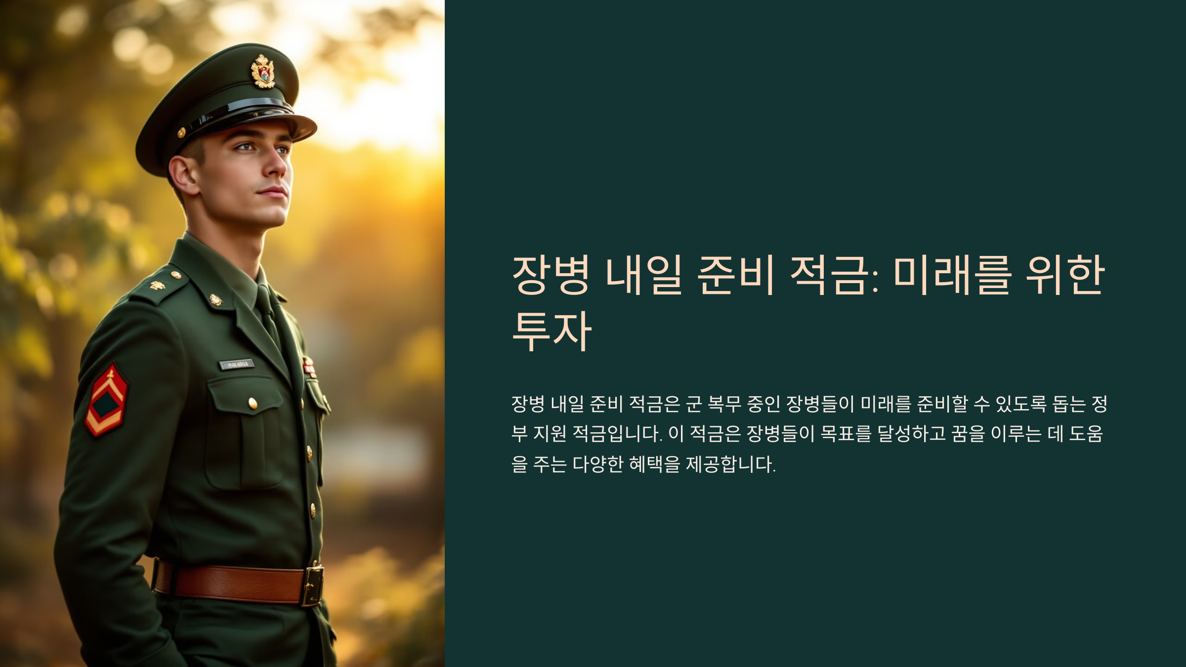 안녕하세요, 장병 여러분! 😊 오늘은 많은 군인들이 관심을 가지는 '장병내일준비적금(군인적금)'에 대해 알아보겠습니다. 이 적금 상품은 군 복무 중 장병들이 목돈을 마련할 수 있도록 돕는 특별한 재정 상품입니다. 미래를 위해 소중한 자산을 형성할 수 있는 절호의 기회이니, 지금부터 하나씩 살펴보겠습니다!